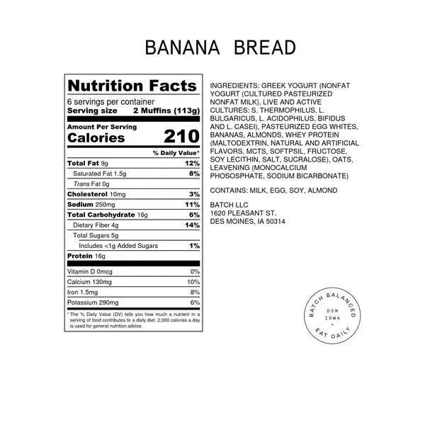 Batch Balanced products are frozen high-protein muffin batter. Bought and stored frozen until you are ready to make fresh muffins at home. It is as simple as thawing the batter, cutting a corner of the bag, piping batter into muffin trays, and baking. The batter yields 12 mindfully balanced muffins. The muffins will provide you with nutritious, tasty and convenient meals and snacks throughout the week.