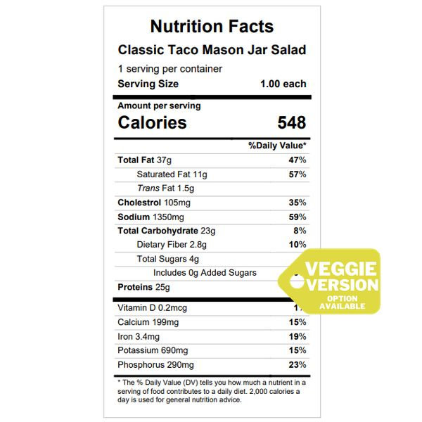 - Classic Taco Mason Jar Salad (no modifications to our mason jar salads, please)